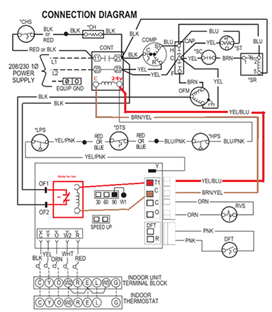 When there is no power on the T1 Terminal the outdoor fan runs continuously. With no power on T1, it will not allow the defrost process to happen which, in turn, would energize the relay and change the NC set of contacts to “NO” thus shutting down the outdoor fan.