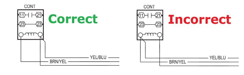 Typically, the reason this happens is because it is mis-wired at the contactor. The brown wire should be on one side of the contactor by itself. The rest should go on the other side.
